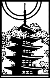 You will see our logo on the door. It's small but it looks like this pagoda: